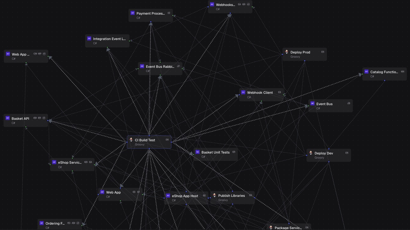 CodeCargo automatically identifies contributors, repositories, services, pipelines, and complex component relationships.