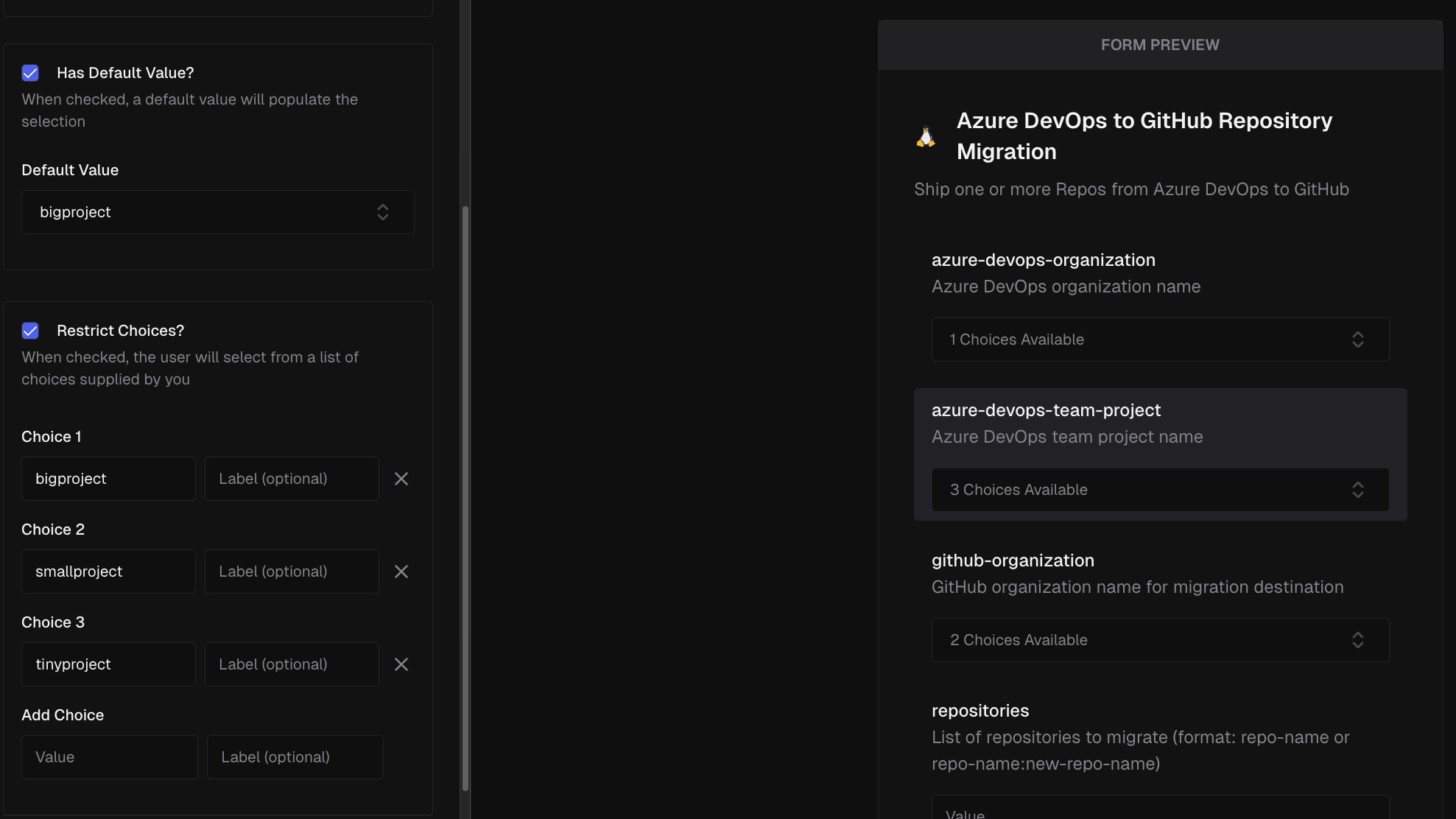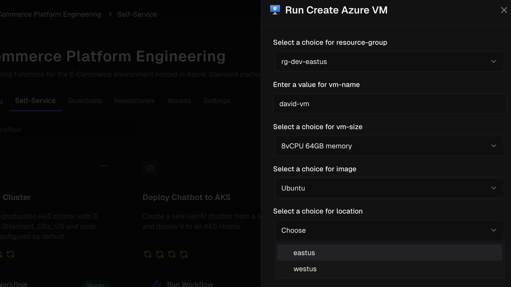 Customize inputs to your self-service workflows to make it easier for developers to consume.