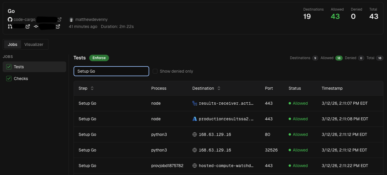 To better understand what was going on, we built a GitHub Action (we call it CargoWall) to audit and enforce network security policies for our workflows. After using it for a few months, we realized this solves a new problem that affects organizations as they scale their AI coding agent usage - so we're going to open-source it.